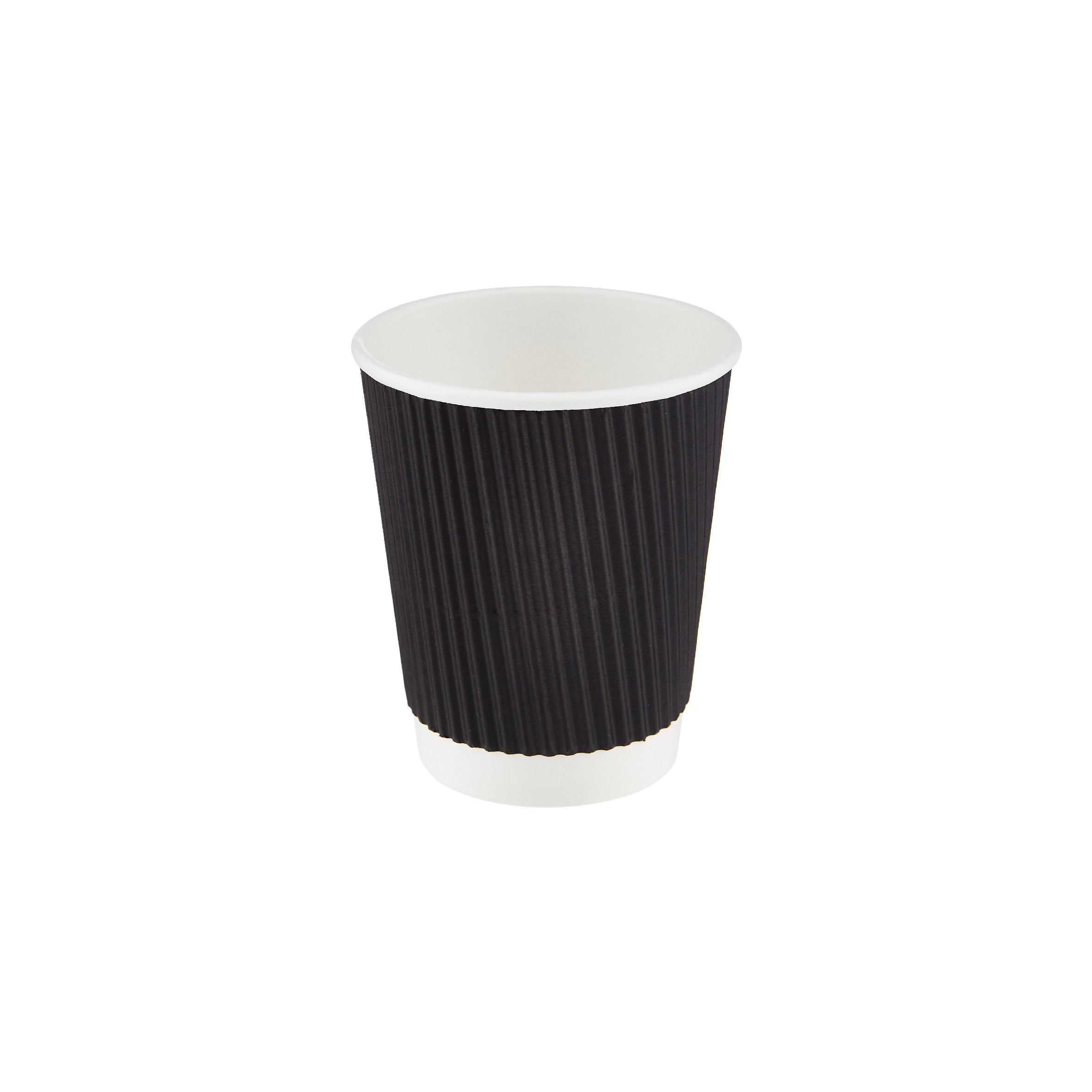 Black Ripple cups protect hands from hot drinks by reducing the surface area of the outside of the cup whilst adding extra insulation through the additional layers of paperboard. Black Ripple cups are the perfect addition to any coffee shop, café, buffet, or breakfast bar to make sure your customers can enjoy fresh coffee, tea, or hot chocolate.