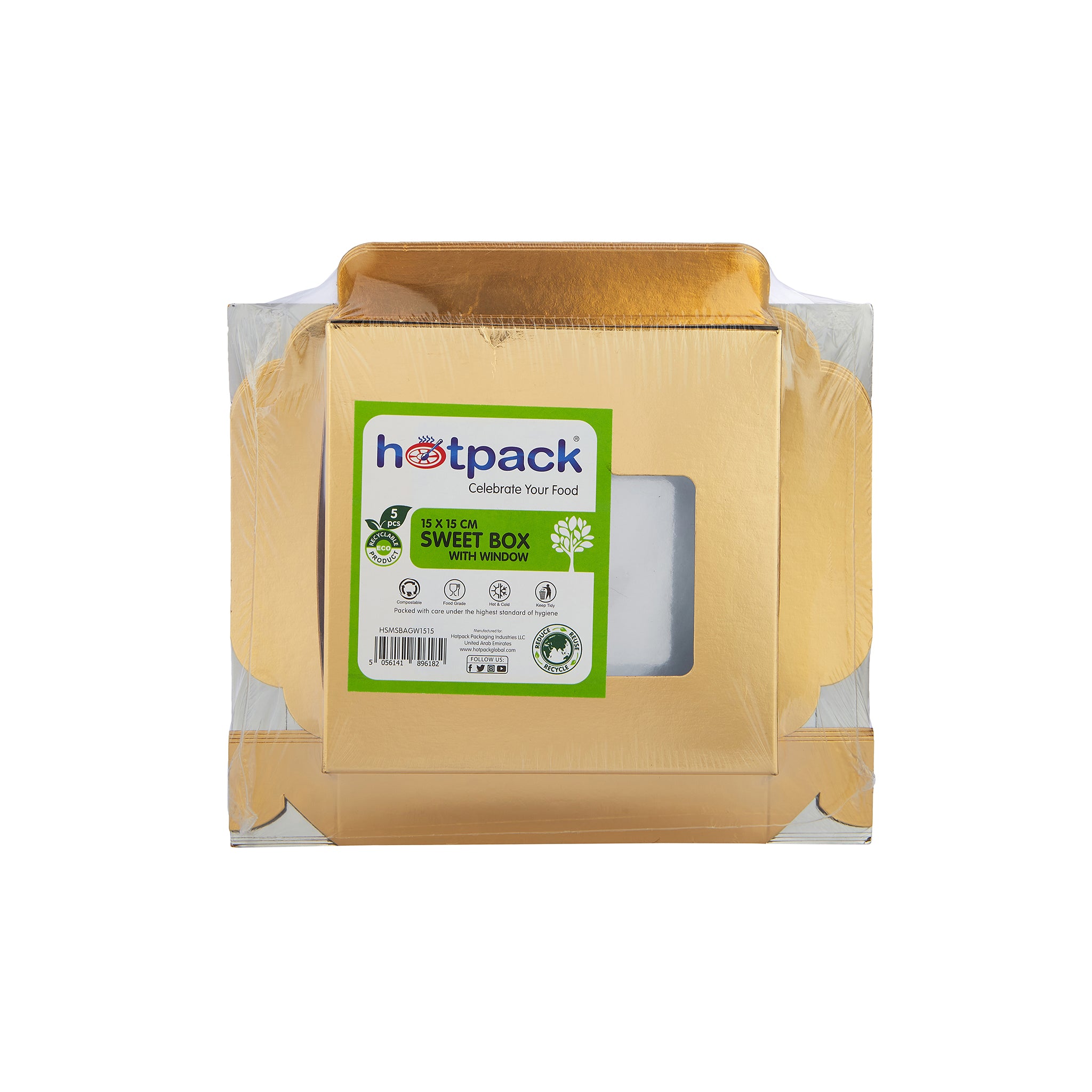This Golden Sweet Box is a great way to offer your delicious, pastries, eclairs. dates or donuts on the go for your customers. Its auto-popup design saves time and makes assembly quick so that you can offer fast and efficient service at your bakery. The viewing window also displays the product for quick and easy identification. Once the window is removed, you can recycle this box, making it a great eco-friendly option for your business.
