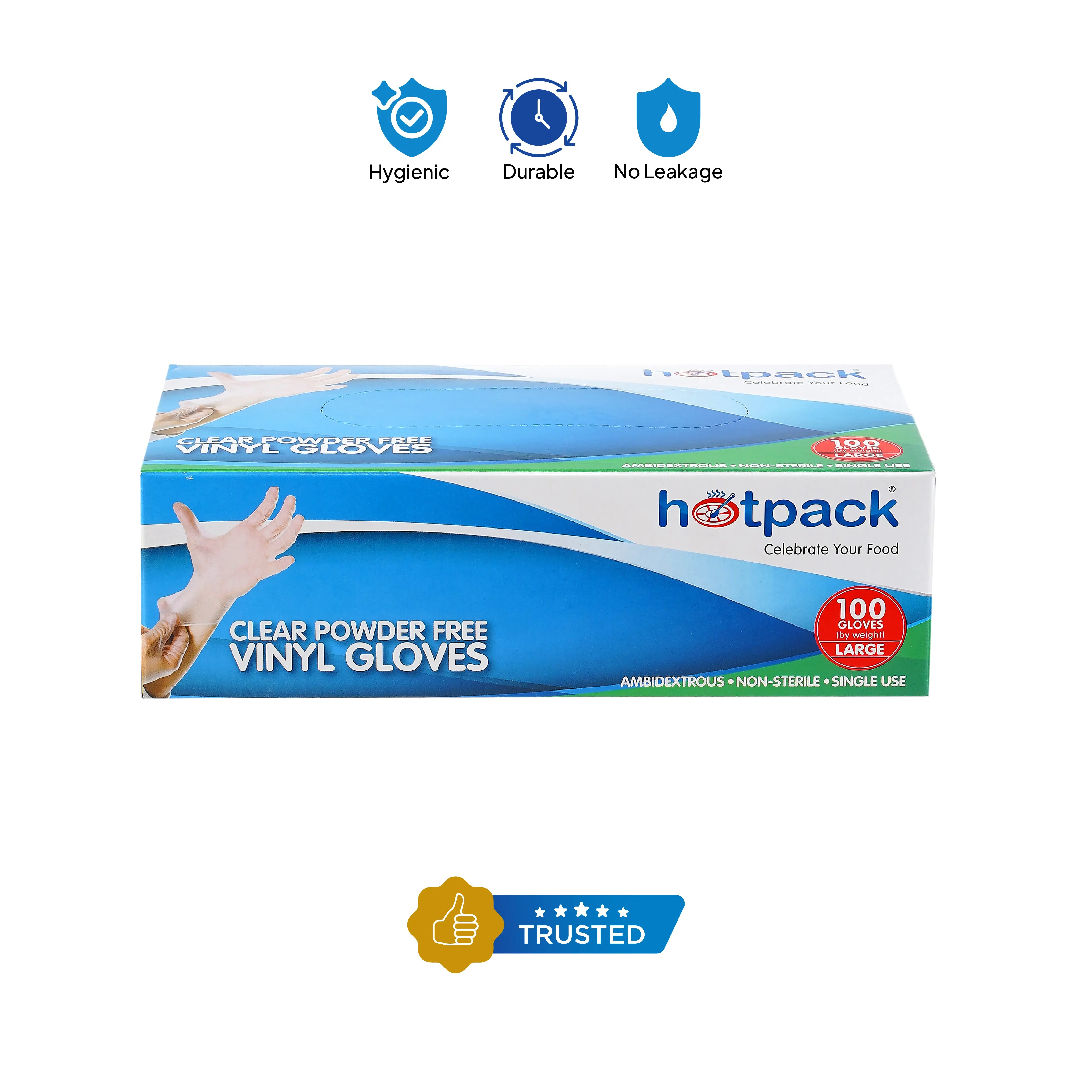 Hotpack Powder free vinyl gloves are an excellent choice for personal hygiene, food service, salon, housekeeping, janitorial, and other light industrial applications These gloves are a great way to keep your staff in compliance with health code regulations at all times. These gloves are versatile and convenient in any setting!